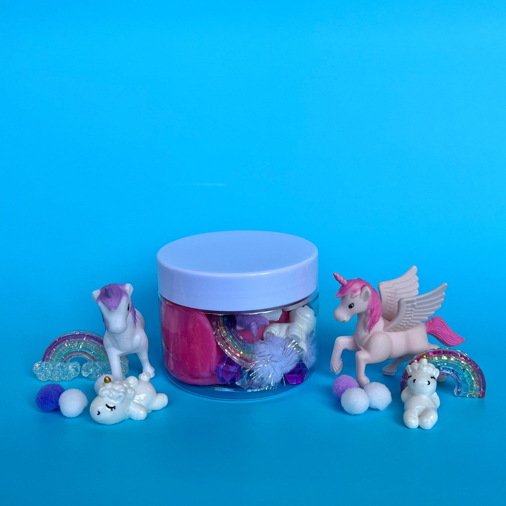 Dream big with Born to Be a Unicorn! This pastel pink play dough has a sweet marshmallow scent and is filled with magical surprises, including unicorns, rainbows, gems, and colorful pom-poms. Perfect for imaginative play that’s as magical as a unicorn’s world!