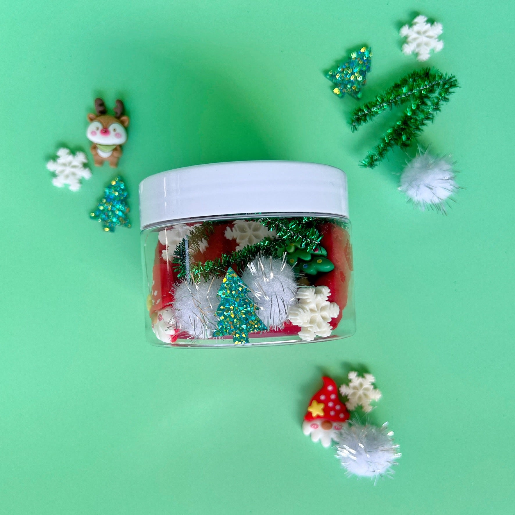 Celebrate the magic of the season with Christmas Cheer! This festive red play dough has a cozy cinnamon aroma and is filled with holiday-themed surprises like pom-poms, pipe cleaners, snowmen, snowflakes, and Santa heads. Perfect for spreading cheer all season long!