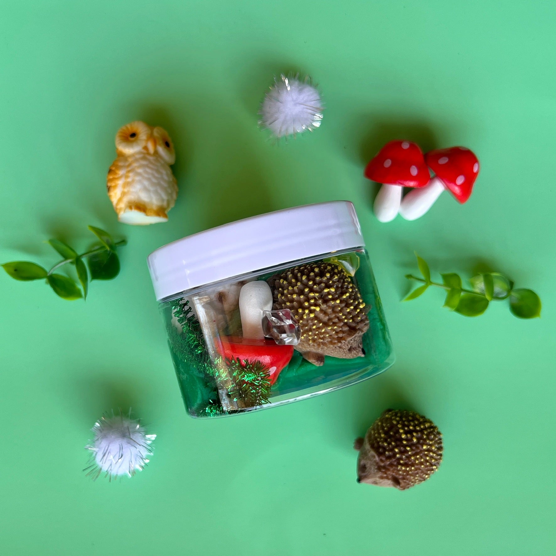 Discover the enchantment of the forest with Wonders of the Woodland! This dark green play dough captures the fresh scent of pine trees and includes adorable inserts like hedgehogs, owls, pom-poms, greenery, and mushrooms. A delightful journey into nature awaits with every play session.